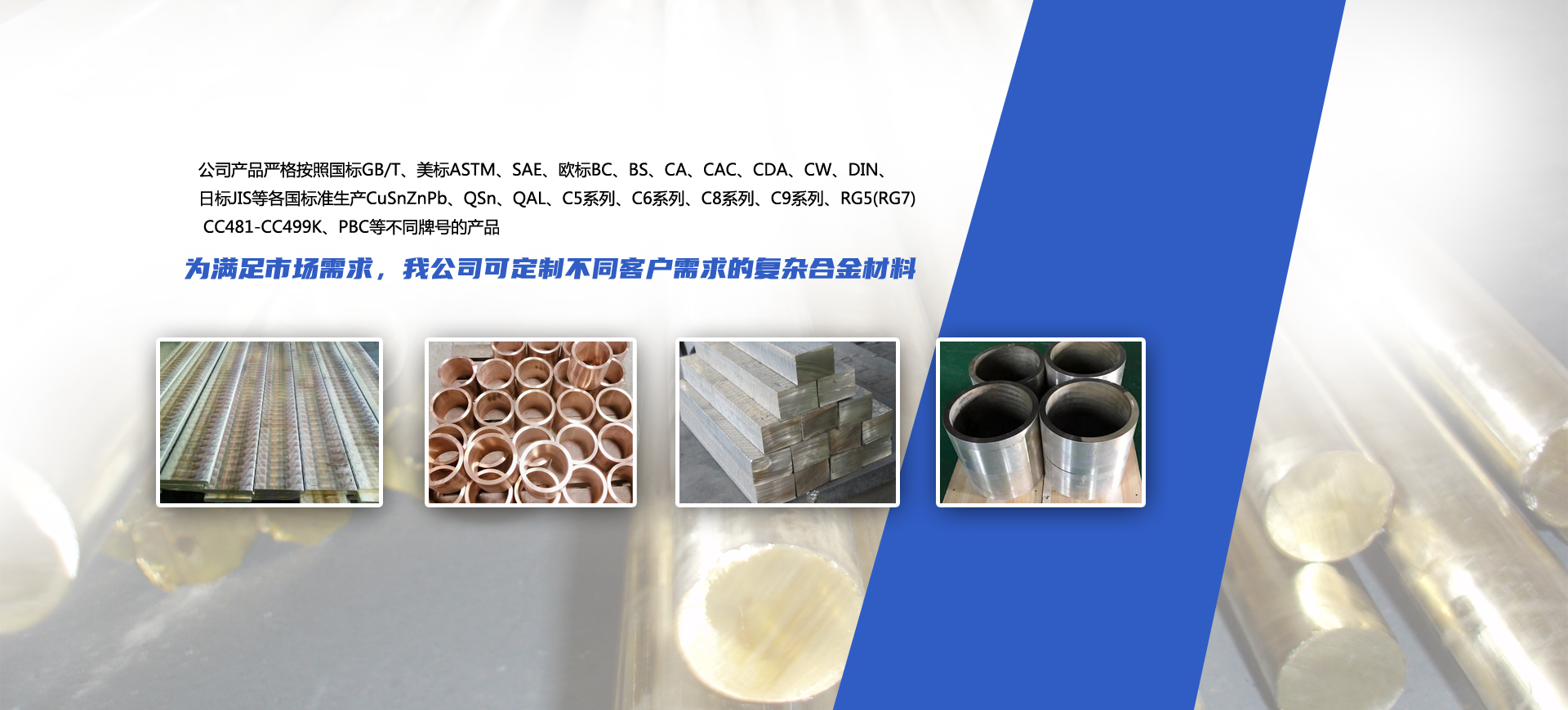 公司擁有多條連鑄熔銅生產線,并配備全分析直讀光譜儀、專業(yè)從事銅合金材料的研發(fā)、加工、銷售,產品主要包含各種牌號的錫青銅、鋁青銅、磷青銅、鉛青銅、硅青銅合金等,該類材料廣泛應用于銅套、軸套、緊固件、軸瓦、彈性元件、渦輪、齒輪、襯套、閥門、泵體、緊固件、翻砂鑄造等方面。
